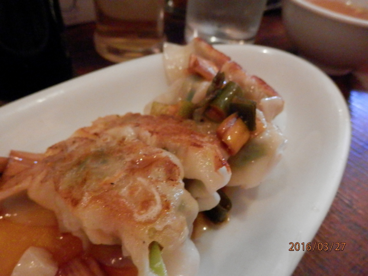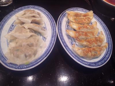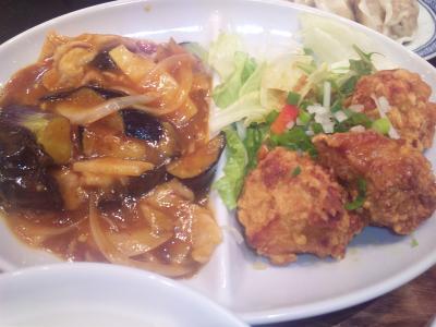 仕事帰り、友人とポッと入った中華屋さん。中華のコンビセットを注文。からあげと茄子の炒め物をチョイス。スープも付いてリーズナブルなお値段。そして期間限定の餃子が100円!水餃子と焼き餃子を一つずつ注文。中華のコンビセットが結構ボリュームがあり、すこーし味が濃い目でご飯がススム(^^;)餃子も美味しかった。どちらかというと焼き餃子の方が好みでした。