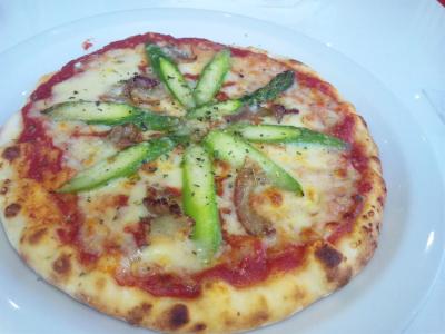 月替わりのピザは♪アスパラベーコン。アスパラのしゃきしゃき感、ベーコンの塩味が絶妙!月替わりのピザの中では第1位☆大好きなピザです。ピザ生地もふっくらでモチモチ。ドリンクはコーヒーを♪セットにすると200円でお替わり自由。久々に訪れたホール店。ゆったりくつろげました♪