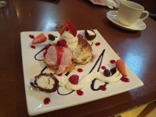 平日限定の15:00~17:00までプレートスイーツとコーヒーがセットでワンコインの500円♪コーヒーは時間内はおかわり自由でスタッフの方に頼むと注ぎに来てくれます。プレートスイーツはティラミスを注文♪アイス、ティラミス、ラズベリー、苺などが盛られていて華やかです。ちょっとティラミスの味が薄かったかな?と思いますが美味しかったです。コーヒーもお替りしました!