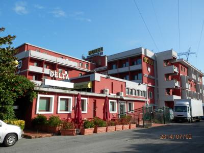 カレンツァーノ地区。ホテル近く、10~15分くらい歩いたらカルフールがあります。ホテル裏の方に高速の出入り口があって交通の量は多いですので高速を横切らず遠回りをした方が良いです。客室内はシンプル。セミダブルのベット、浴室にはバスがあります。朝食は、パン・ハム・ヨーグルトなど卵料理とソーセージ1人1本(笑)もありました。