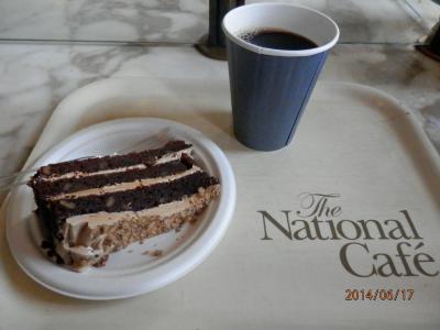 ナショナルギャラリー内のカフェ。ゆっくりコーヒーを飲みながらティータイム。好きな物を取って会計へ~のセルフ方式。私はナッツのケーキを頂きました。コーヒーにはピッタリでした。なかなかリーズナブルな料金でしたよ。鑑賞に疲れたら一休み♪良い休憩スポットです。