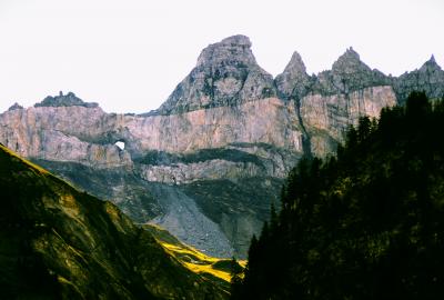 マロヤ峠方向。左遠方にはヴァリスのモンテローザが薄っすらと見えました。