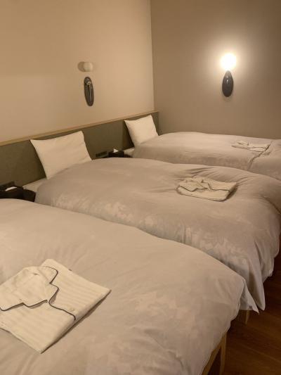 お正月の帰省で利用しました。2人でダブルのお部屋、朝食なし、3泊で19000円とかなりお安く泊まれました。お部屋はテーブルと簡易的なソファがあり、スーツケース2個をギリギリ広げられるくらいの大きさでした。おしゃれでとても心地よく過ごせました。難を言えば、お部屋のお風呂が古いのと、エアコンの調節が冷暖房の切り替えができなくて温度設定のみ、冷蔵庫の冷えが悪いことかな…