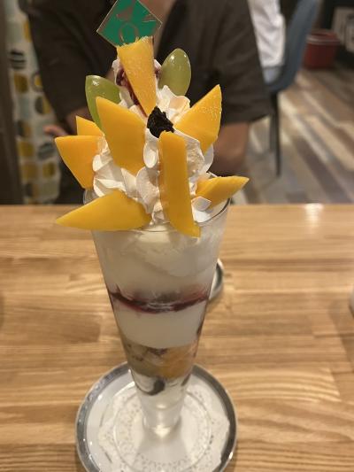 桃のパフェを頂きましたが、桃が新鮮で甘ーい!!