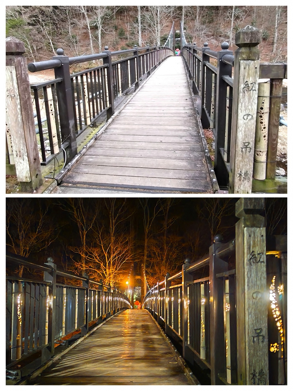 箒川沿いのフォトスポットや、建物や通路や紅の吊橋のライトアップなど頑張っていました