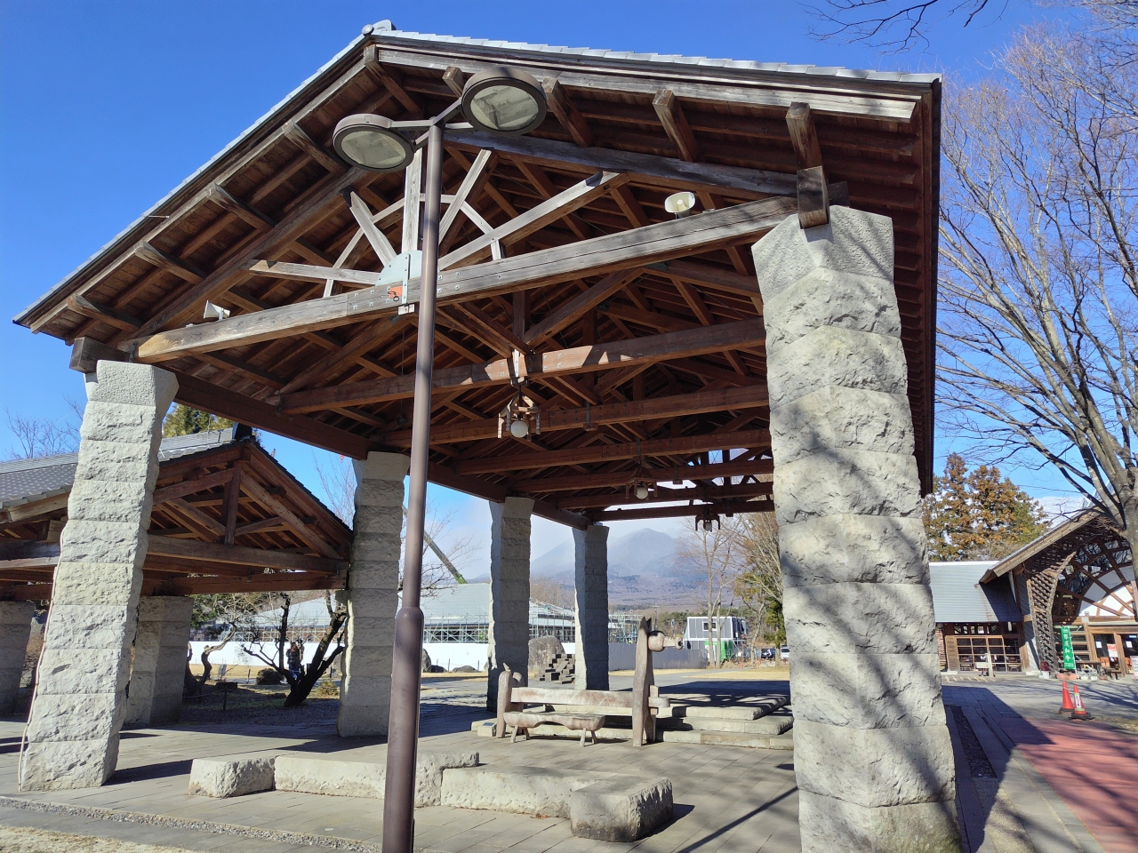 関東バス待合所を兼ねている那須町観光協会と那須温泉神社の間にあります。前に広い駐車場があるので、安心して利用できます。