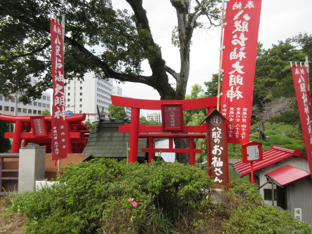 松山城外堀の東堀に沿った東堀端通りには、非定型自由律の俳句を唱えた河東碧梧桐の句碑があったり、八股榎お袖大明神もあって千本鳥居などもあります。