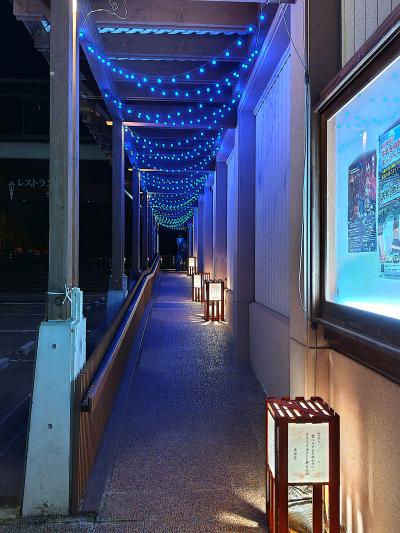今回は、ライトアップもしていると知って日没後も立寄ってみました。建物や通路や紅の吊橋にもライトアップがなされていました。いろいろ工夫して頑張っていることが伝わってきました。