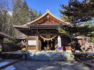 ご祭神は、大己貴命(別命大国主命で、縁結び・商売繁盛・身体健全・温泉守護の神)、 少彦名命(土地の開拓・農業の神・温泉の神)、誉田別命(別名幡様で、武運の神・勝運の神)。山の傾斜に沿った参道の上り下りは、老体にはややこたえます。
