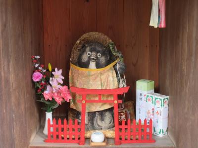 「門番さん」と呼ばれる狸像は、寒くてお腹を壊さないように、お腹に前掛けをしています。