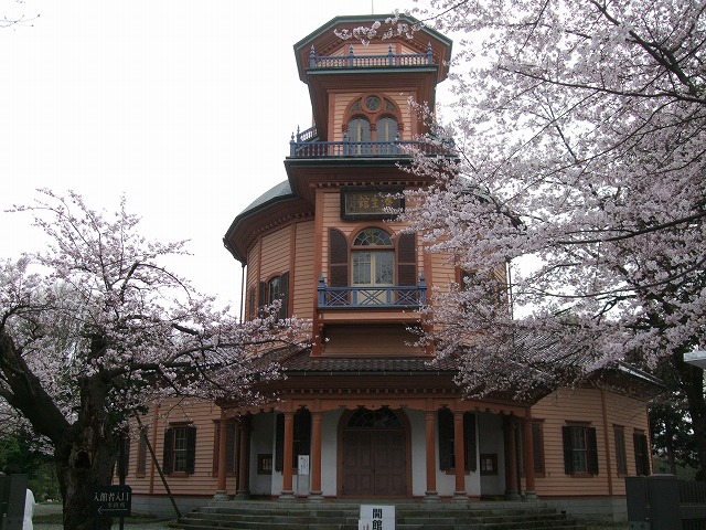 八角形の建物が珍しく、緑色の屋根と、オレンジ色の木製の壁が素敵なコントラストをなしています。さらに春は周囲のピンク色の桜の花が、より華やかにしています。- 旅行時期