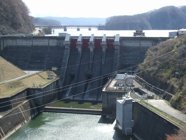 釜房ダムは、名取川の洪水対策、生活用水、灌漑・工業用水、水力発電を目的にして、1970年(昭和45年)に完成したダムです。高さ45.5m、横幅177m。