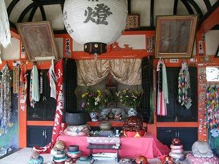由来書きには、安置されている聖観音像は弘法大師の作とされていますが、すぐに手が届くので、不用心な気がします。 由来は平安時代からということで、山形城主も代々信仰して、松平下総守忠弘が寛文元年(1661年)に、京都清水寺の舞台を模して、堂宇を寄進、現在の堂宇は昭和51年(1976年)に再建されたもので、朱色が鮮やかです。