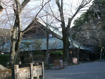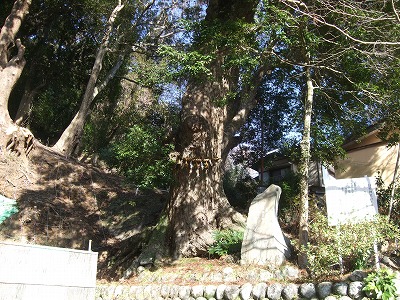 本殿の裏には『一位樫』が立っていて、伊豆では珍しい樹木で県の文化財に指定されています。根回りが5.5m、高さが25mもあります。