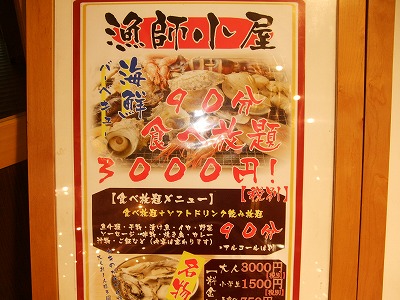 『浜焼き90分食べ放題』(3000円税別)だと、魚介類、干物、漬け魚、イカ、野菜、ソーセージ、串物、焼き鳥、カレー、汁物、ご飯が食べ放題です。