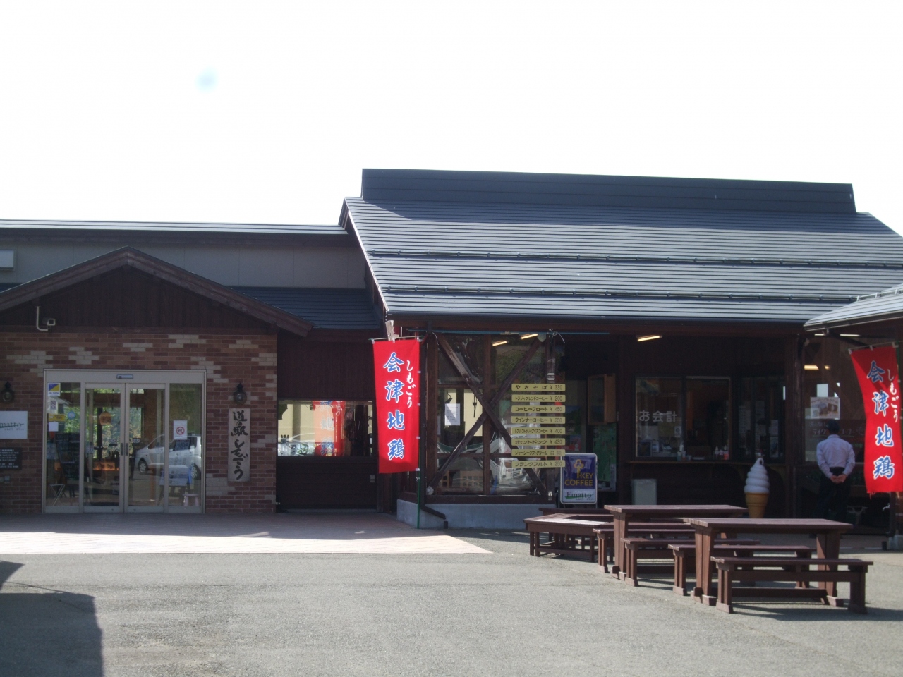 道の駅みたいで、建物内には、新鮮農産物や各種山の幸などの地場産品が並んでいます。花豆とか山菜類、会津地鶏が使われた商品も多いです。