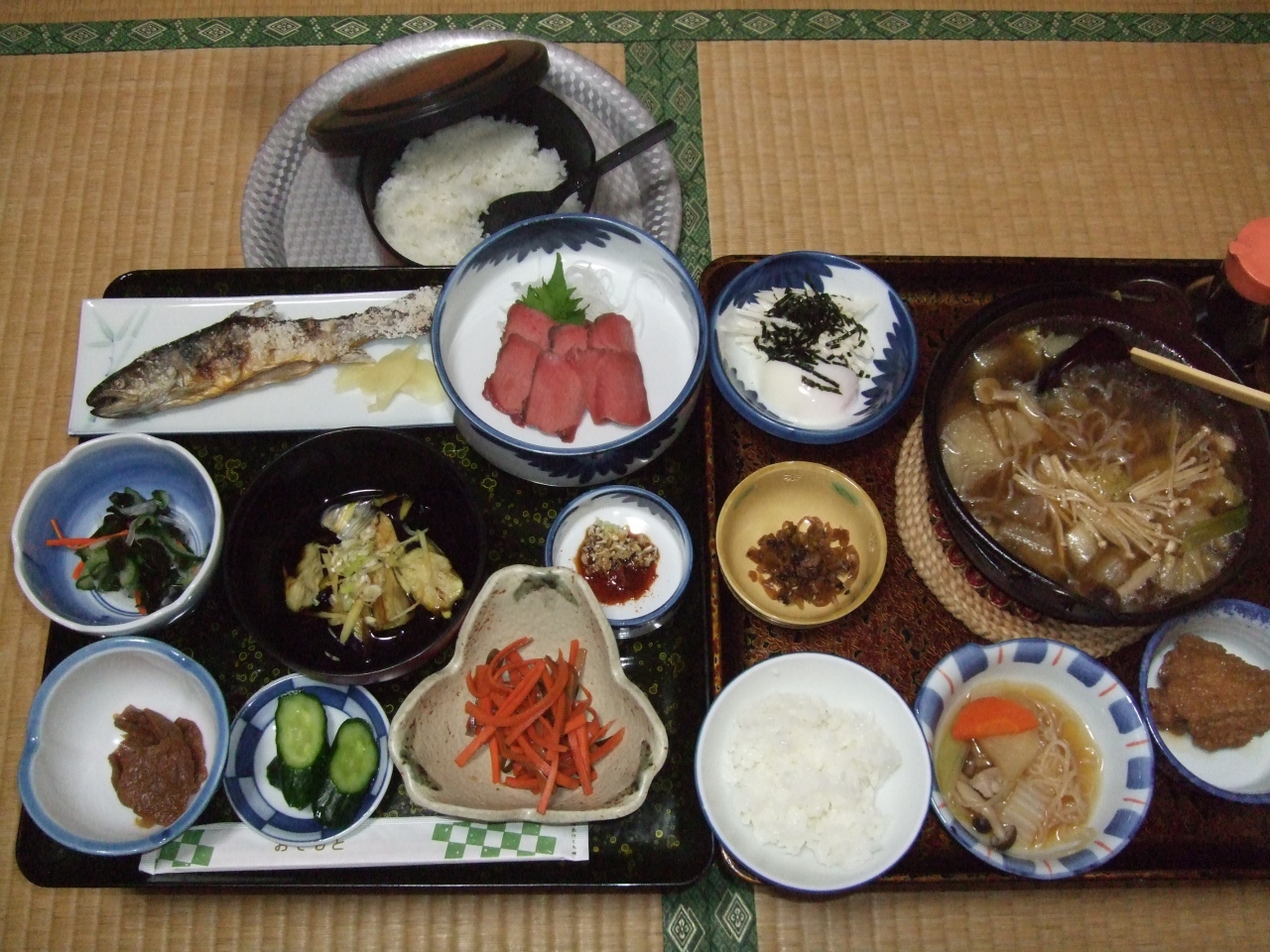 食事は、山菜や野菜がふんだんに使われて、皮魚の塩焼きやゆばなどの郷土料理は、どれも味付けも身体にも優しい料理ばかりです。
