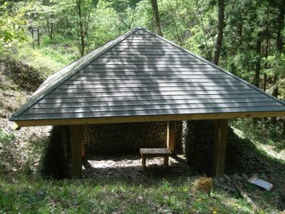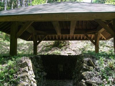2基あった貯蔵庫跡の1つは東屋風に屋根があって、中は石積みの空間になっています。石のすきまから冷風が出てきて、そこにある温度計は2℃でした。外気は25℃だったので、20度以上も低かったです。