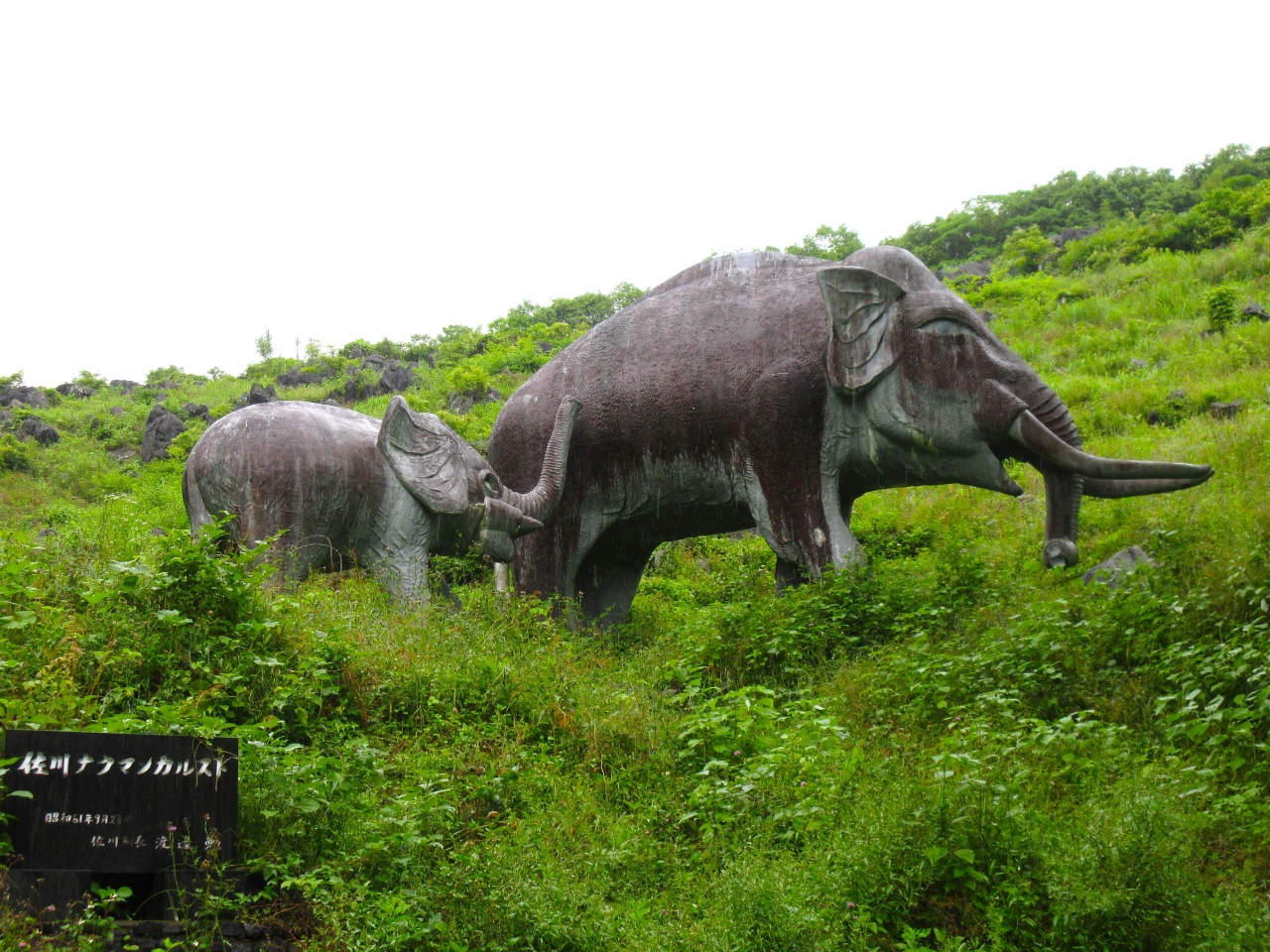 全長9.2m、高さ5.5mの親象と子象のナウマンゾウがいます。この佐川ナウマンカルストは、ドイツ人地質学者のエドムント・ナウマン博士が佐川に訪れた100周年記念に公園として整備されたそうです。
