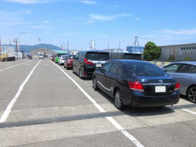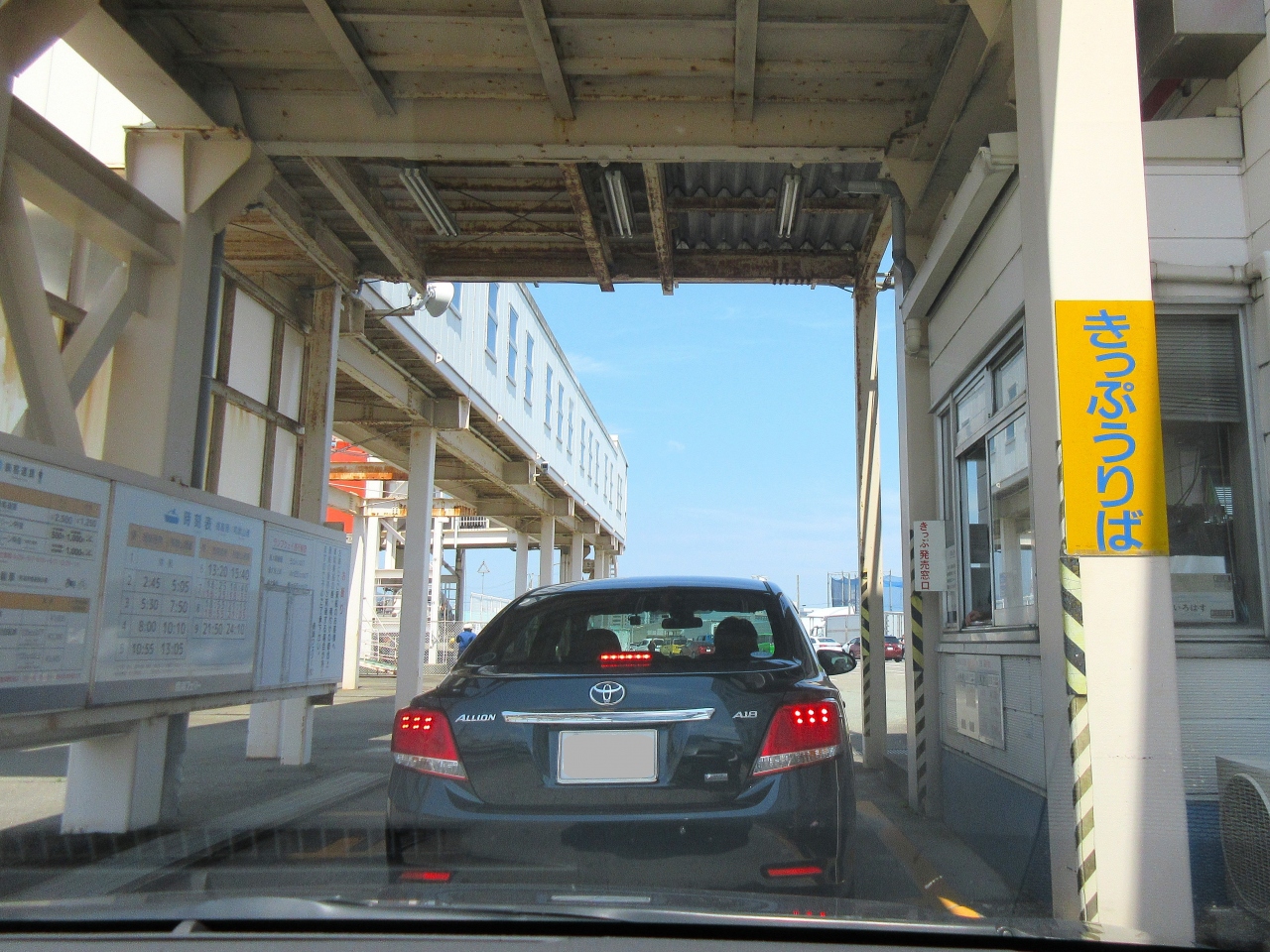 出航30分前までにチェックインするのにぎりぎりでした。車はドライブスルーチェックインです。事前にネット予約して、カード決済完了しているので、非常に簡単でした。