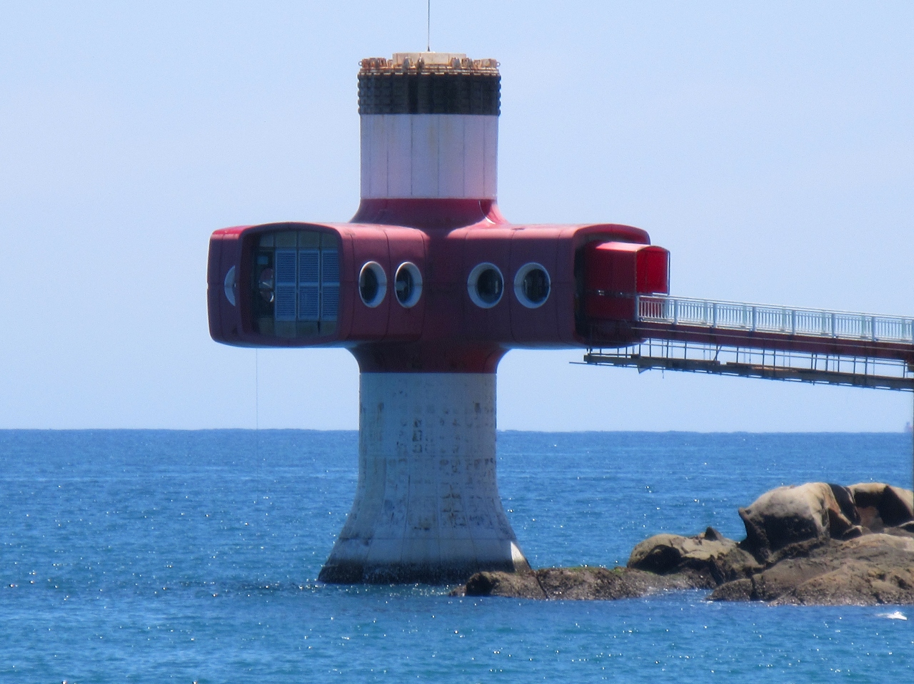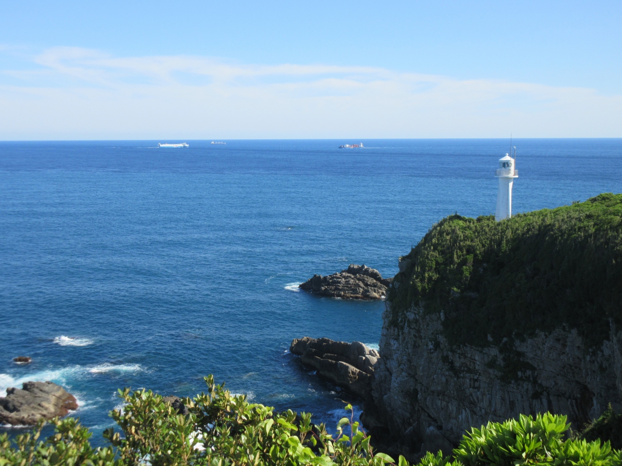 今回は、快晴の中で群青色の海と真っ白な波や灯台が映えていました