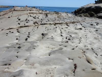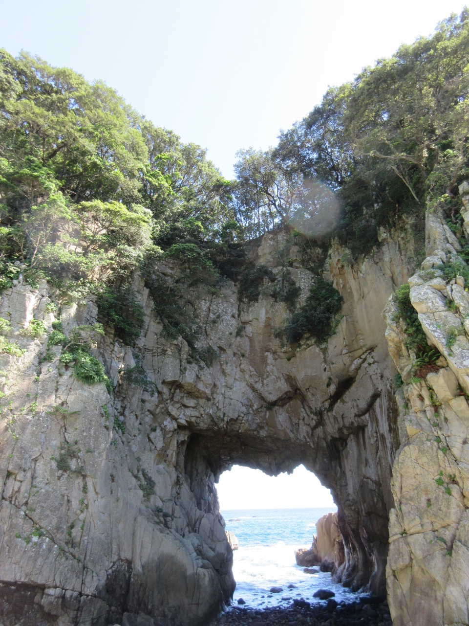 足摺岬の黒潮が当たって、波の浸食作用でできた巨大な海蝕洞門で、高知県の天然記念物に指定されています。