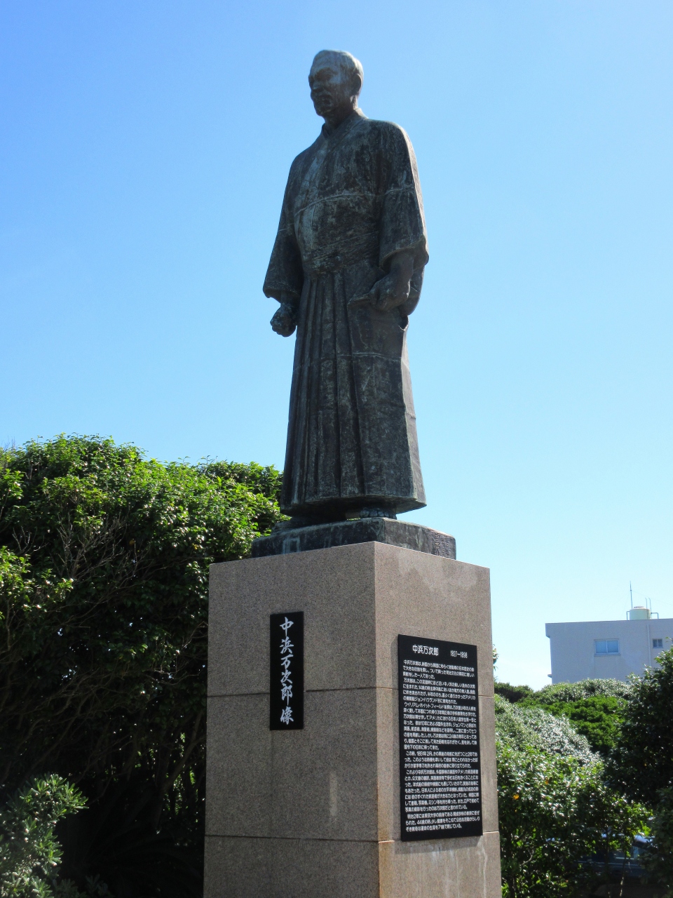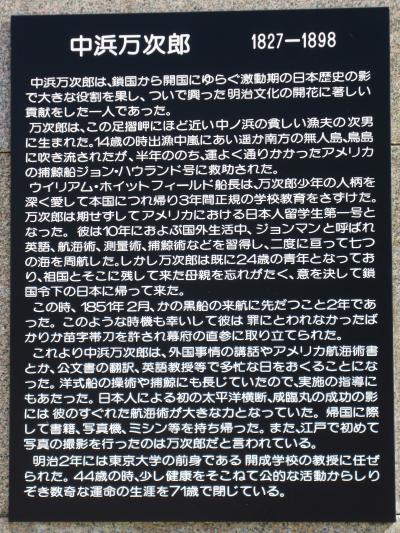足摺岬に近い中ノ浜の漁師の次男で、14歳の時に足摺岬はその沖で漂流して、鳥島で救助された米国の捕鯨船で米国に渡ったわけで、足摺岬に何かと縁があるということでここに銅像が立っているんですね。