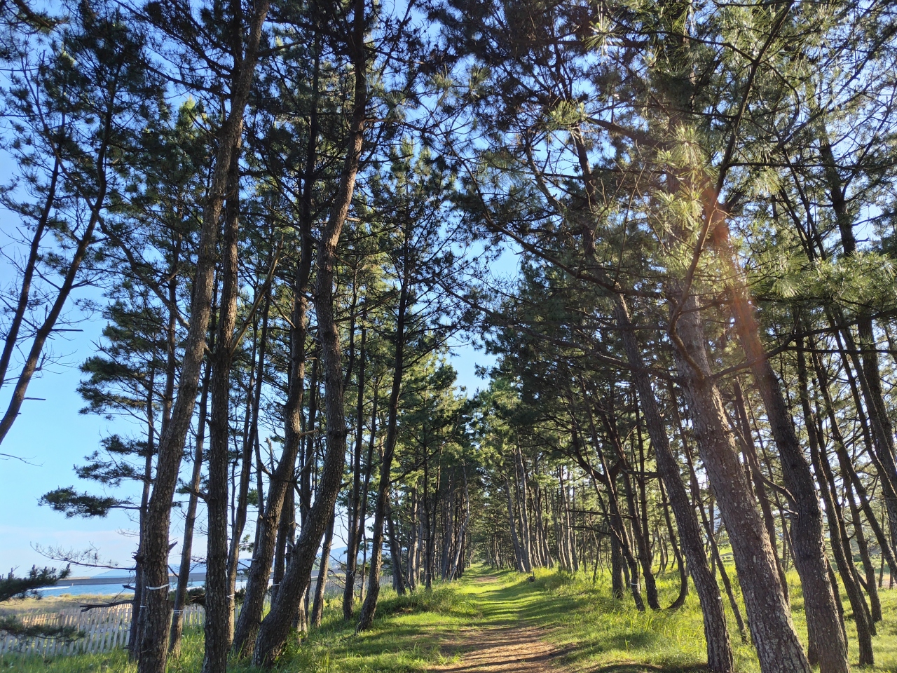 全長が約4kmもある入野海岸に沿って天正の頃に植えられたといわれるクロマツ林が続いています。松林の間を散策できるようになっていて雰囲気が良く、名勝「入野松原」に指定されたのもうなづけます。