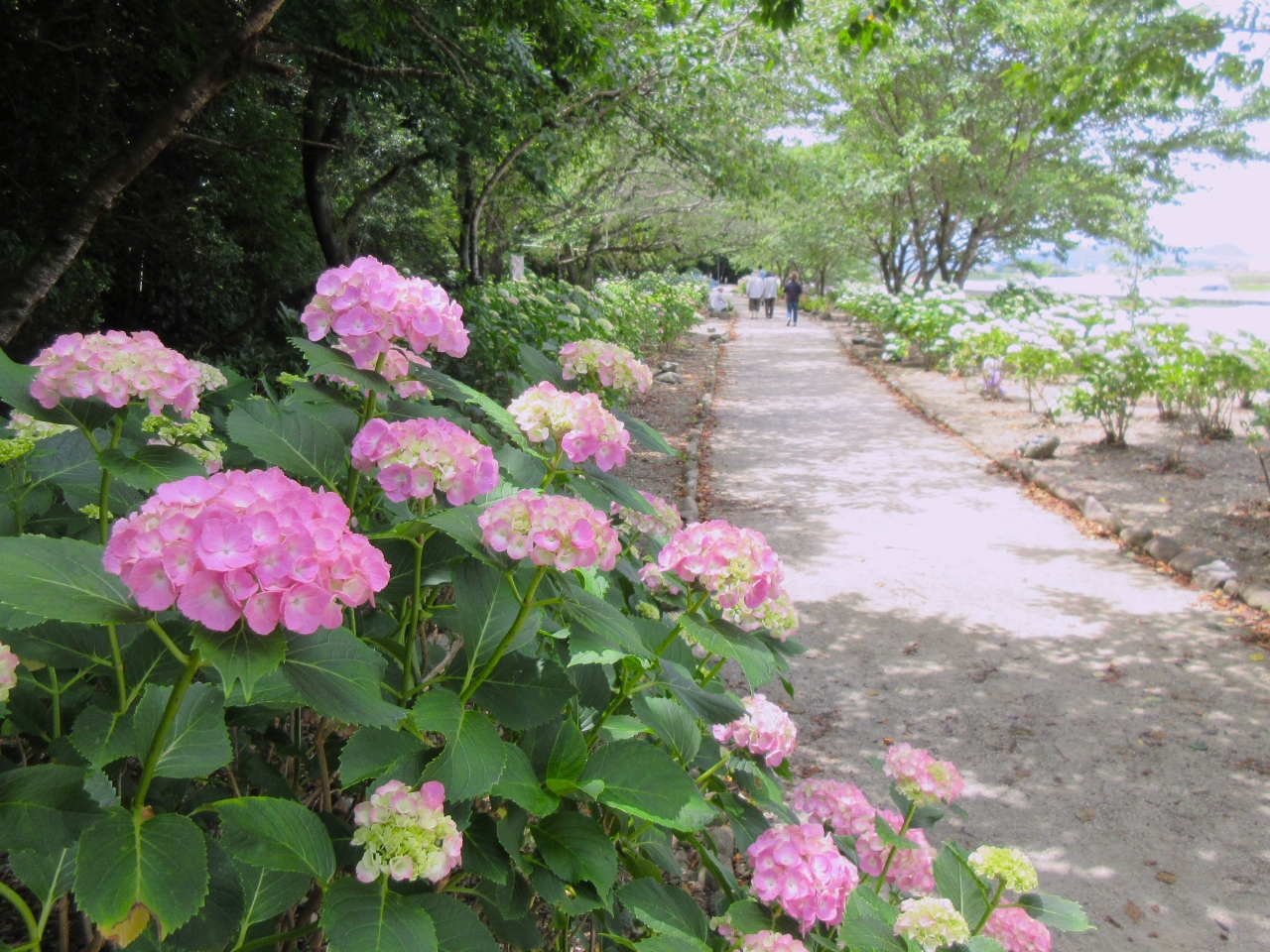 「あじさい祭り」の開催中は、遊歩道も人だらけで、気に入った写真を撮るのも難しそう。