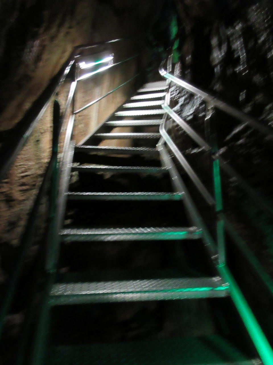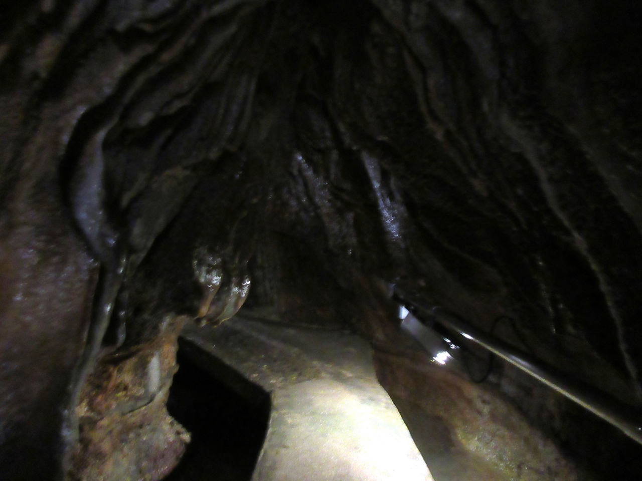 入口に、「洞の長さ約1km、出口は80m上方、所要時間約30分、洞内は狭い所もあり階段もあります。心臓病等、体調の悪い方は、お気をつけてください」という掲示板があって、まさにその通りでした。