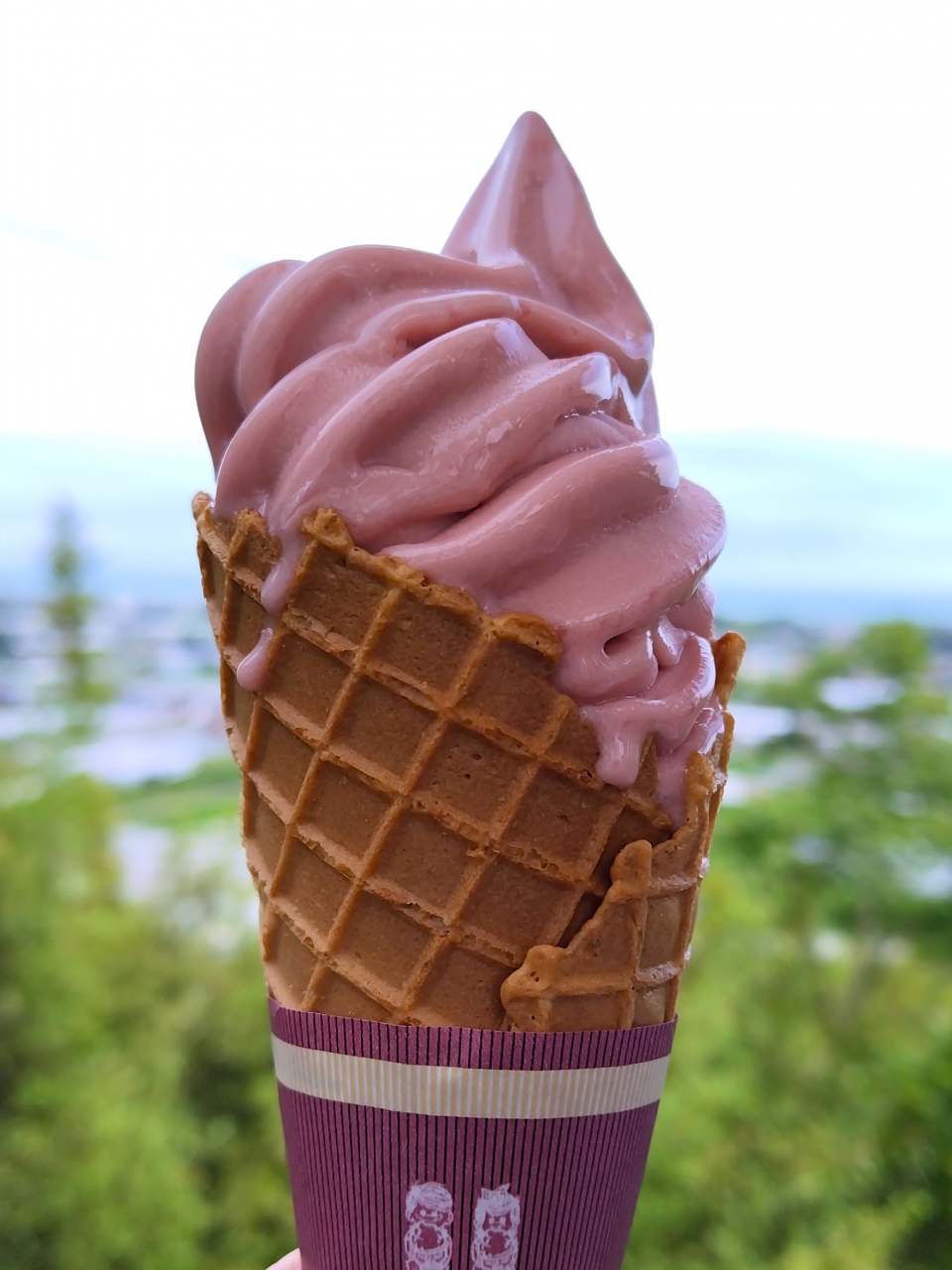 『あまおうソフトクリーム』(400円)を購入して、外の見晴らしの良いスペースでいただきました。かなり濃厚で、とても美味しかったです。