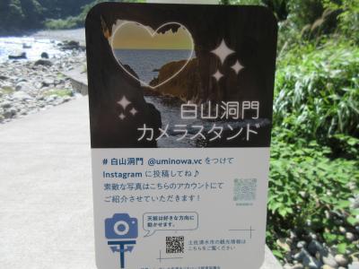 白山洞門を目の前にして、左右から見比べたものの、しっかりした「ハート形」には見えなかったです。でも、フォトスタンドが用意されていて、楽しめます。