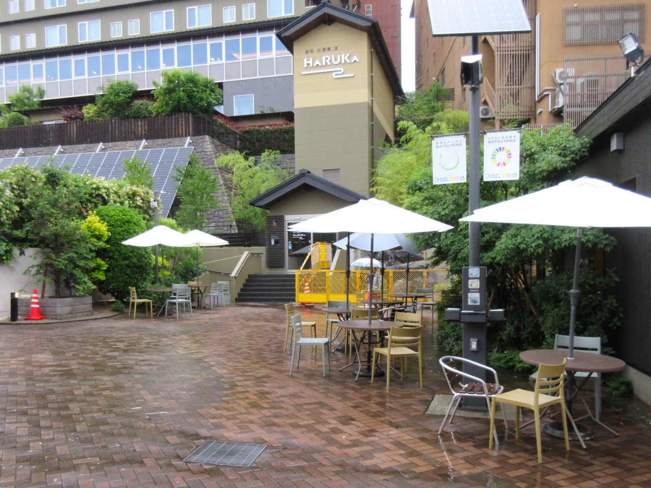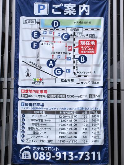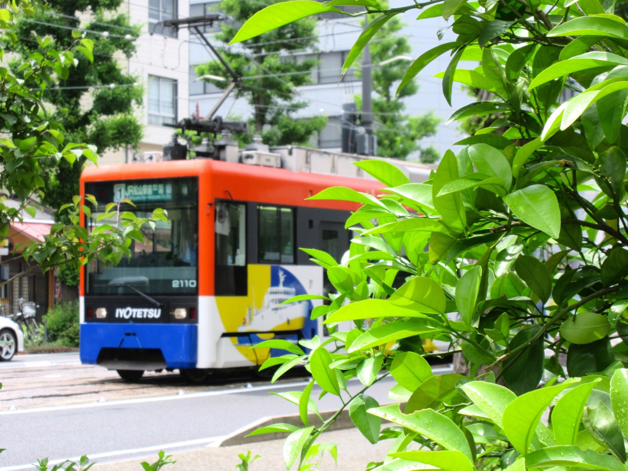 ロケーションが抜群で、伊予鉄道市内線(路面電車)の松山市駅と、城山公園入口の南堀端駅の間の花園町通り沿いにあって、足の便が良いです。