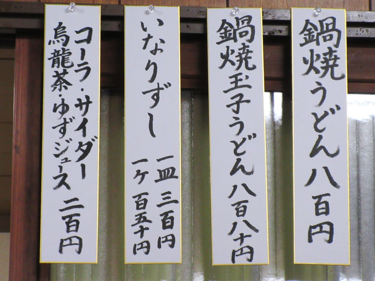 メニューは『鍋焼うどん』と『いなりずし』のみで、『鍋焼うどん』に玉子を入れるか入れないかを伝えます。