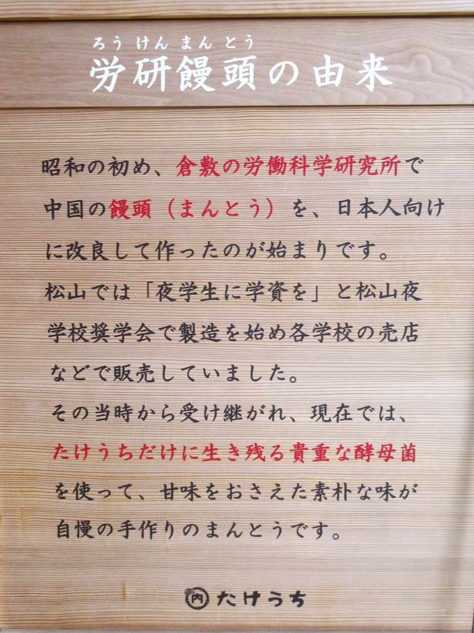 昭和初期に倉敷の労働科学研究所で、中国の饅頭(まんとう)を日本人向けに改良した素朴な蒸しパンだと事前の情報。