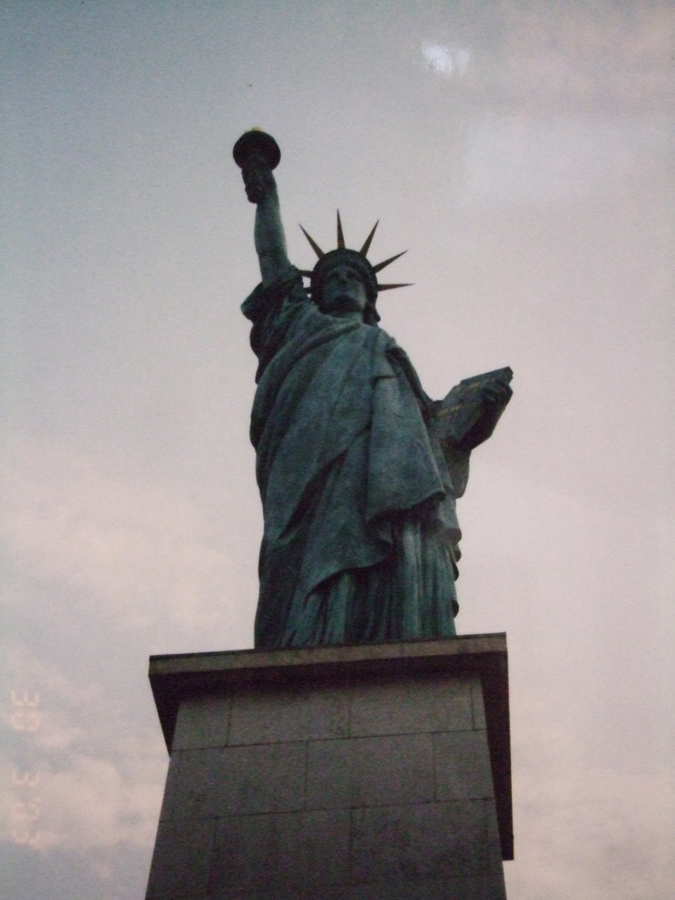 『自由の女神像』を見たくて、友人たちと地下鉄を乗り継いで、グルネル橋に行きました。グルネル橋の上から見ると、後ろ姿になってしまいます。橋の途中から中州に降りて、中州の先端に『自由の女神像』は立っています。やはり、本物の存在感が違うなあ、と感じました。オルセー美術館にも見比べに行きました。これよりも小さいです。