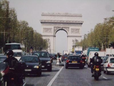 いつも凱旋門を中心にしたロータリーをバスで回るだけで、一度も上まで登ったことがありません。バスや自動車はロータリーでの駐停車禁止なので、車窓からもゆっくり見るゆとりもありません。今度パリに行ったら、上まで登ってみようと思います。シャンゼリゼ通りとかいくつかの道路が放射状に広がるのを、上から見てみたいです。