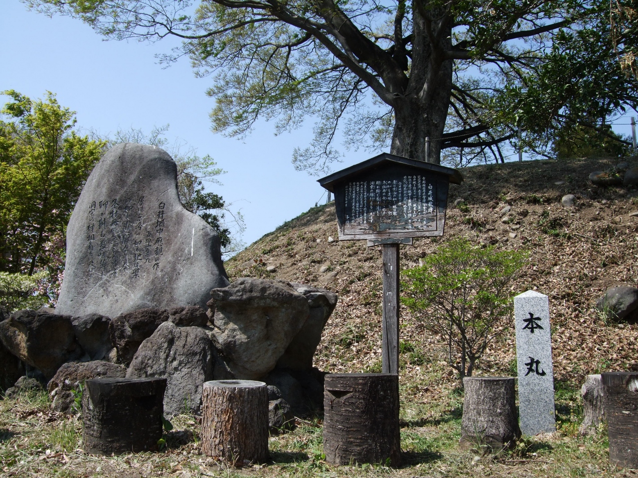 残念ながら、本丸などのお城は残っていません。残っているのは、いくつかの曲輪(郭)跡です。本丸跡に、詳しい由来や図が掲示されています。