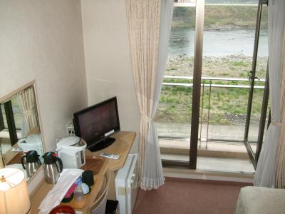 1泊7900円で2連泊しました。シングルベッド洋室で、1人宿泊です。部屋は広くはありませんが、設備とアメニティは十分に整っていて、快適でした。お風呂は付いていませんが、洗浄機能付きトイレが付いています。2階のどの部屋からもベランダから、利根川と榛名山が見晴らせます。
