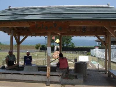 公園内に無料の足湯所「よりともの足湯」があります。源泉掛け流しの温泉に足をつけて、旅の疲れを少し癒すことができます。駐車場、トイレ、足つぼを刺激する歩道もあります。全ての施設がまだ新しいので、気持ち良く利用できます。場所がちょっとわかりにくいのですが、目標は旅館「すみよし館」で、その隣にあります。