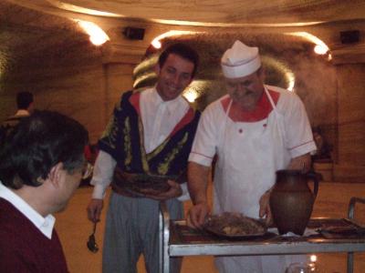 テーブル毎にシェフとスタッフがサービスしてくれます。壺から料理を取り出して、取り分けてサービスしてくれるので、目でも楽しめる食事のひとときになります。2時間はかかります。