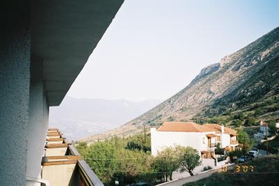 街の高台の上の方にあります。部屋の窓からは、標高2000m以上のヨーナ山が見えるなど、見晴らしはとても良いです。デルフィ遺跡まで行くには、車で15分くらいかかりますが、4つ星のホテルの割に宿泊料金が良心的なので、デルフィ観光に都合の良いリーズナブルなホテルと言えます。