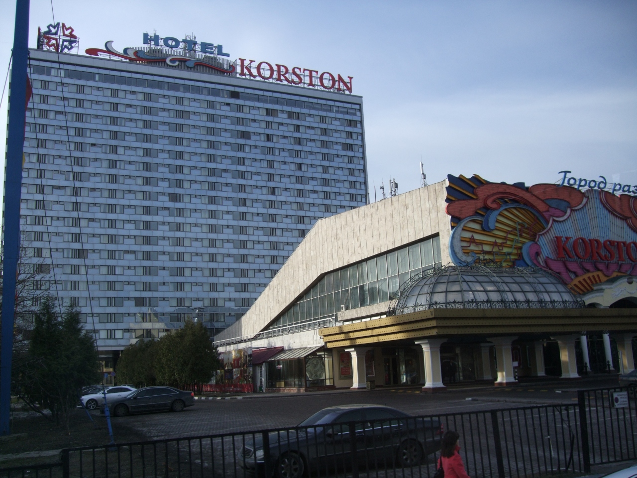 ただし場所は、モスクワの市街中心部より8km離れていて、地下鉄駅も離れていて、不便です。モスクワ大学の近くで、ホテルの周辺は木々や緑も多くて、公園もあるので、ジョギングする人がいました。