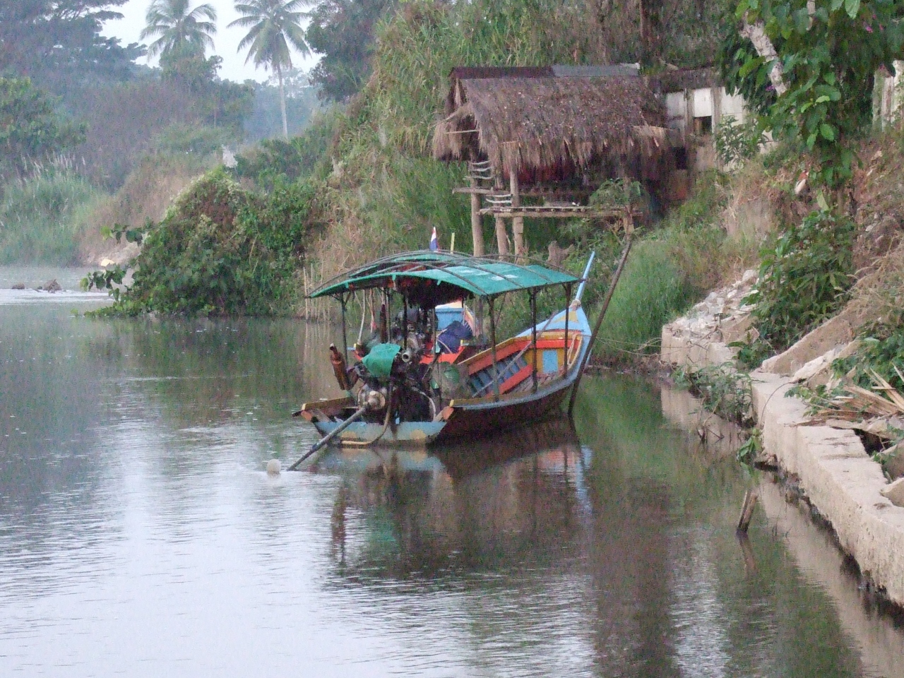ホテルは、チェンライの市街地からは離れているので、その分敷地はかなり広くて、何でもゆったりと余裕を持って作られています。植物の種類も多いし、様々な花が咲いていました。ホテルの裏の川には、ホテル専用の船着き場もあります。