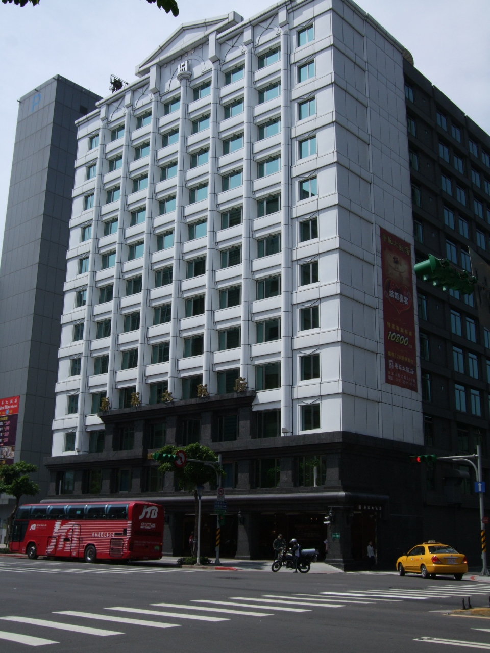 MRTの「行天宮駅」から上がったところにあるので、台北市内を自分で歩き回るにもとても便利です。1区画歩けば行天宮があるし、その交差点の地下には「占い横町」があります。ホテルは12階建てで、白い建物は遠くからでも目立つので、迷うこともありません。客室もゆったりして、清潔で、設備も整っていました。有線LANも、無料で接続できました。