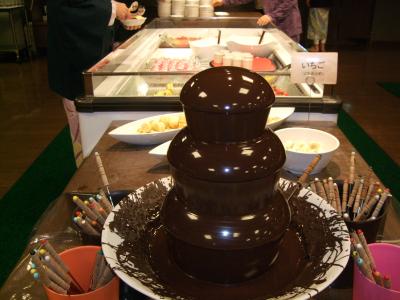 夕食の和・洋・中のバイキング料理は約50種類以上の料理があって、10種類以上のデザート、フルーツ、10種類以上のソフトドリンク、ソフトクリームがあります。チョコレートファウンテンもあって、いろいろなデザートにつけて楽しめました。さらに2月は、8種類くらいのアルコールも飲み放題でした。朝食も充実していました。
