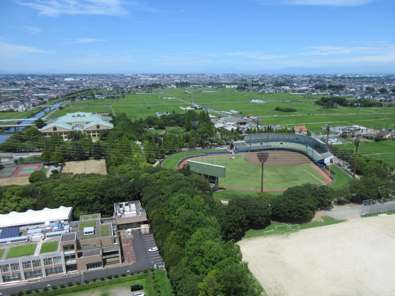 7月と8月は「こしがや田んぼアート」を無料の展望台から観賞できるので、ありがたいです。正直言って、地上80mの高さから見ないと、巨大な田んぼアートの図柄がちゃんと見えません。
