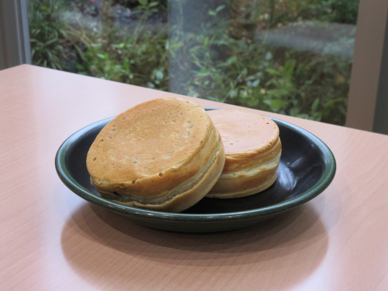 『御座候』の白あんと赤あん(各110円 現金)を購入していただきました。皮が薄くてパリッとして、上品な甘さのあんがたっぷり入っています。