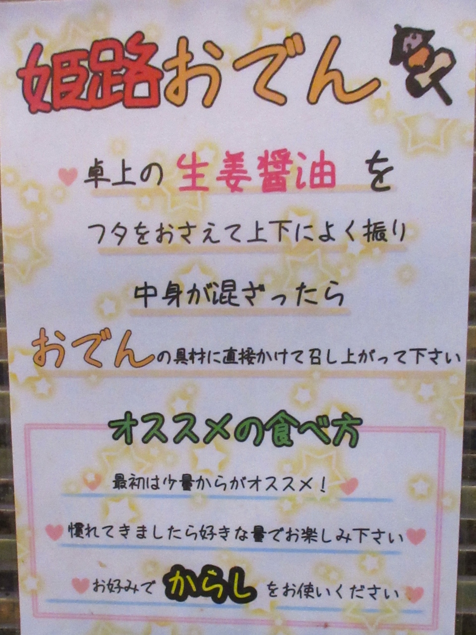 長い店名の通り、「姫路おでん」や「ひねポン」などのご当地グルメで、テレビにも多く取り上げられました。