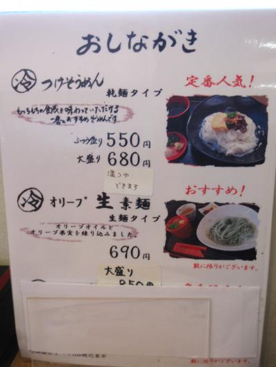 しかも『オリーブ生素麵』という、そうめんとオリーブの組み合わせも興味を引きました。